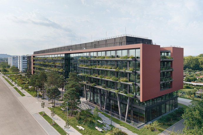 Regensburg verfügt über 1.300 denkmalgeschützte Gebäude, über zwei Drittel davon in der UNESCO Weltkulturerbe-Liga, das neben dem Dom bekannteste dürfte die Steinerne Brücke über die Donau sein. Überquert man sie in Richtung Süden erinnert bald nur noch der Name des Stadtbezirks an das Mittelalter: Am Galgenberg wird heute Zukunft gedacht, zwischen Universität, Ostbayerischer Technischer Hochschule, Biopark, Energiepark und Techbase sind die leuchtend-roten Kacheln des Vector Gebäudes gut auszumachen.