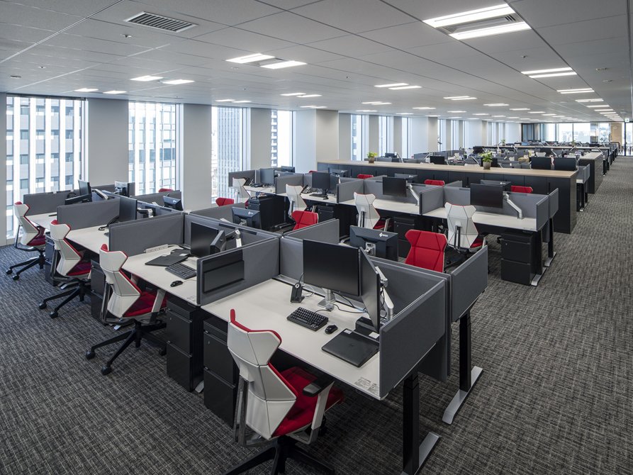 人間工学に基づいて設計された、高さ調節ができるデスクや高品質オフィスチェアが標準設備として備えられているので、腰痛に悩まされることはありません。オフィスはエネルギー効率の高い空調設備を備え、常に快適になっているので、無用に汗をかくこともありません。